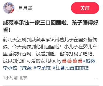 比如赵今麦、冯建宇等,其中就包括戚薇、李承铉一家,他们都是同一班飞机落地北京。